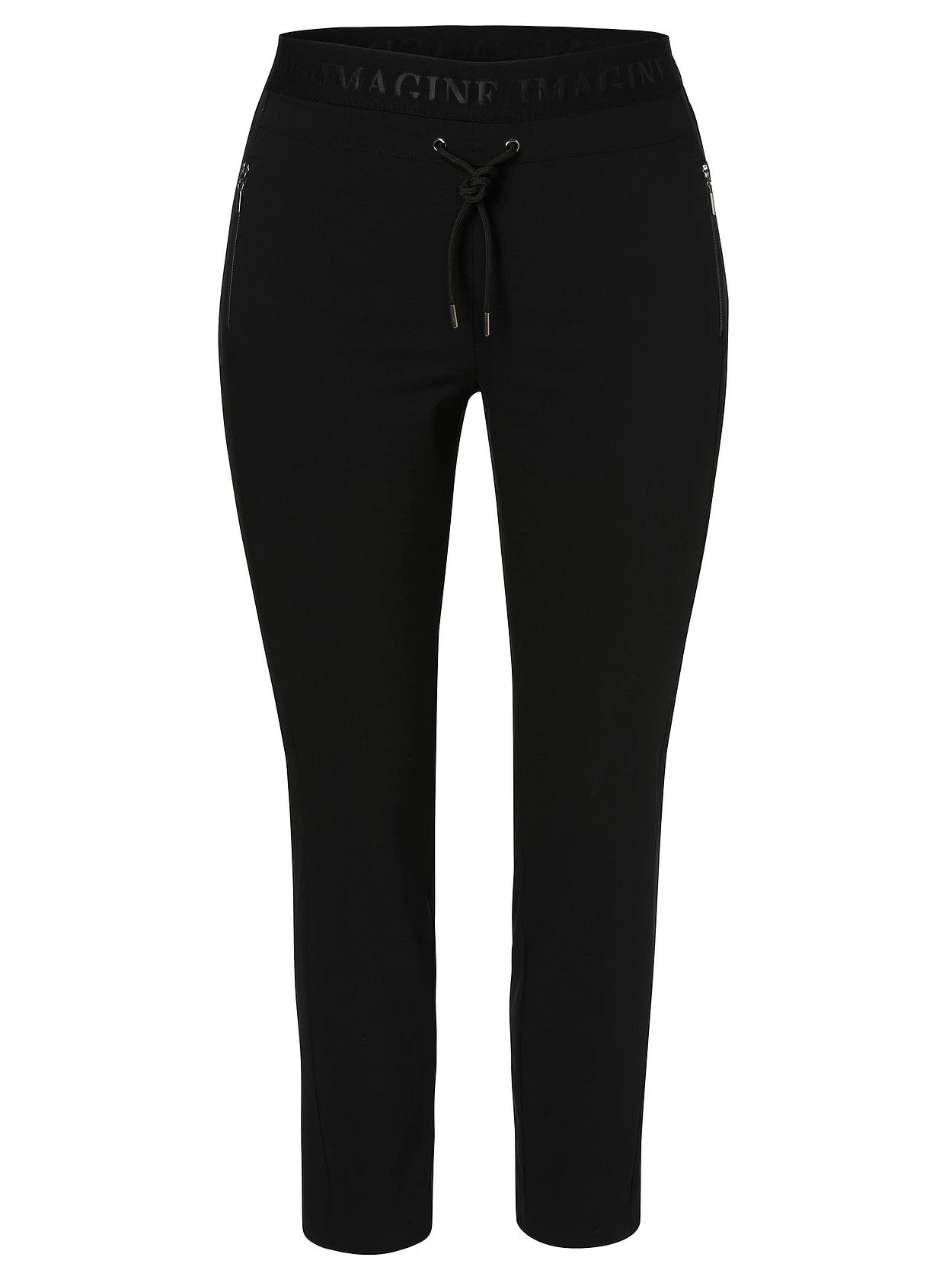 Joggpants von VIA APPIA DUE. Die sehr schmale, knöchellange Hose wird hier mit sportiven Details kombiniert. So ist der bequeme Schlupfbund vorn mit einem lässigen Bindeband gearbeitet, der Wordingprint am Gummibund dient als Eyecatcher. Eingrifftaschen mit Reißverschluss ergänzen den modischen Auftritt.