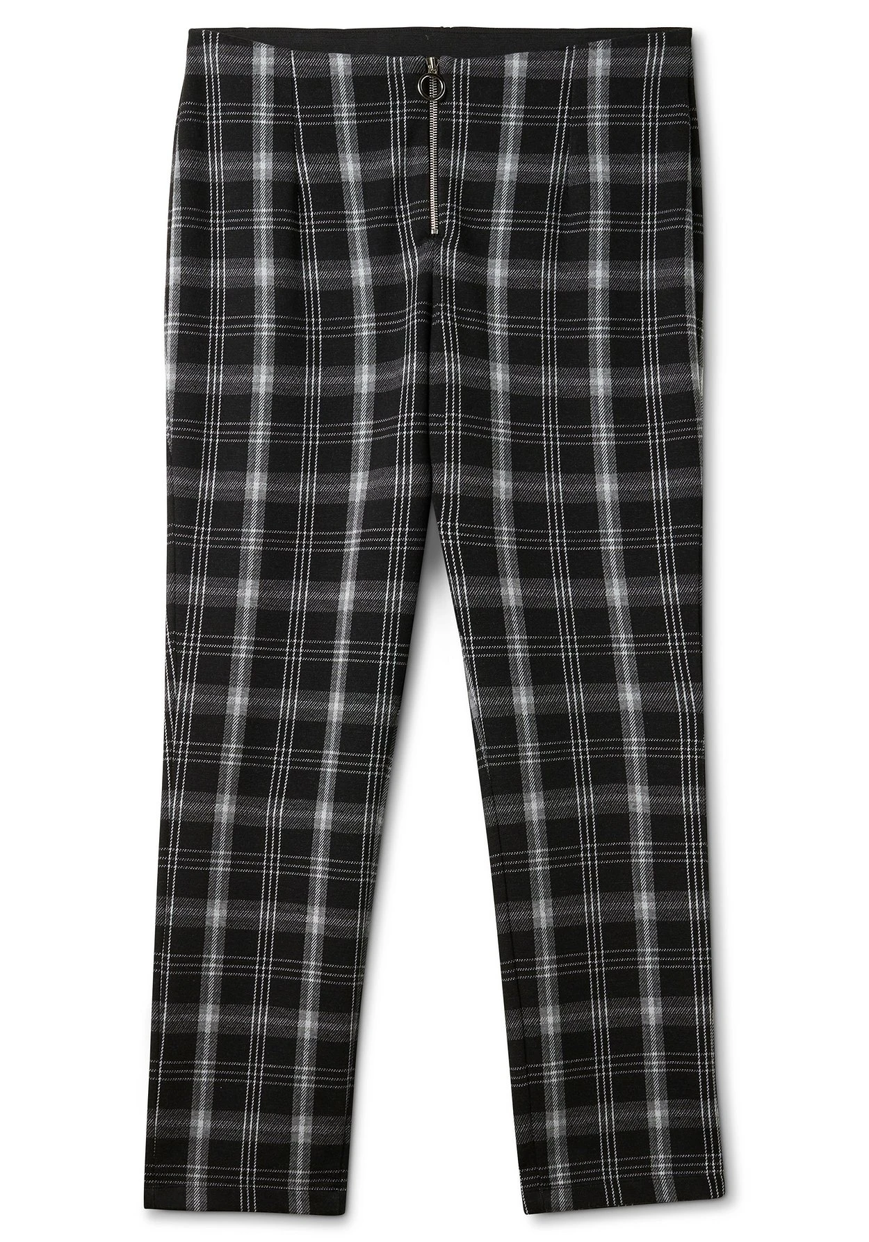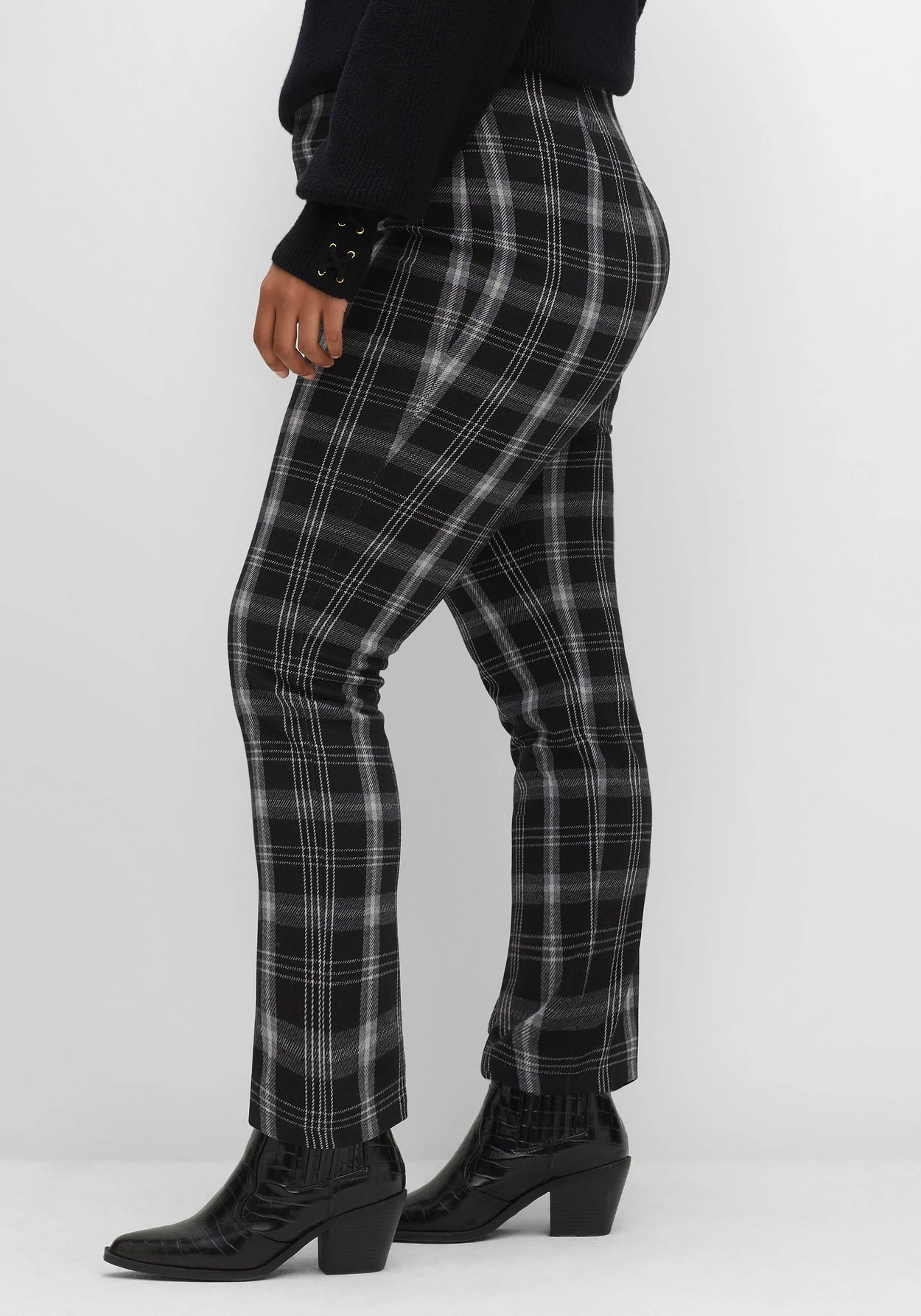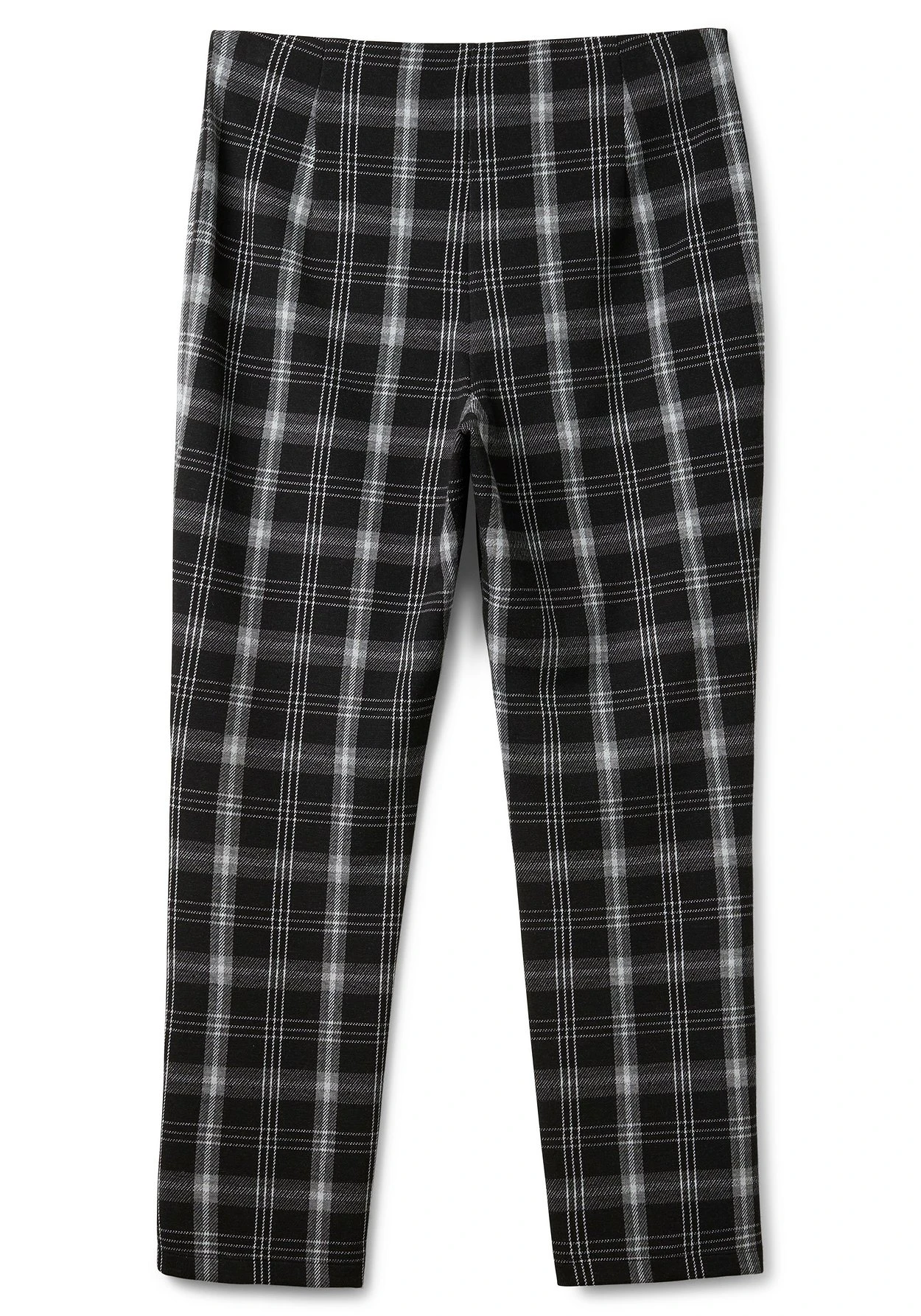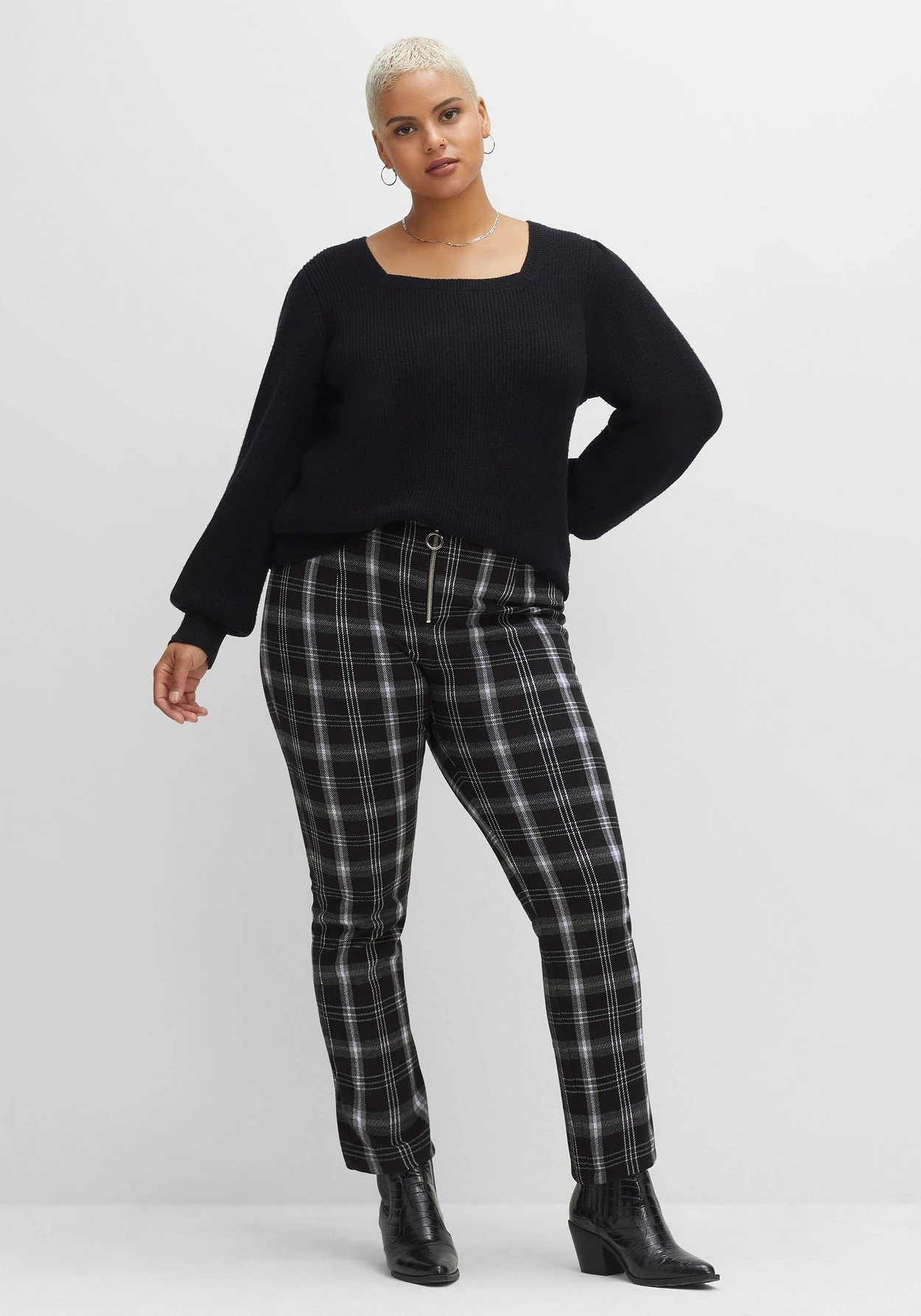 Karierte Hose von sheego by Joe Browns. Nicht nur das garngefärbte Karo-Dessin ist zeitlos, auch der bequeme elastische Bund steht auf der Beliebtheitsskala ganz oben. Der sichtbare Reißverschluss mit dekorativem Ringzipper ist praktisch und dient gleichzeitig als modisches Element. Gesichert wird der Reißverschluss zusätzlich mit einem Haken und Ösen-Verschluss.