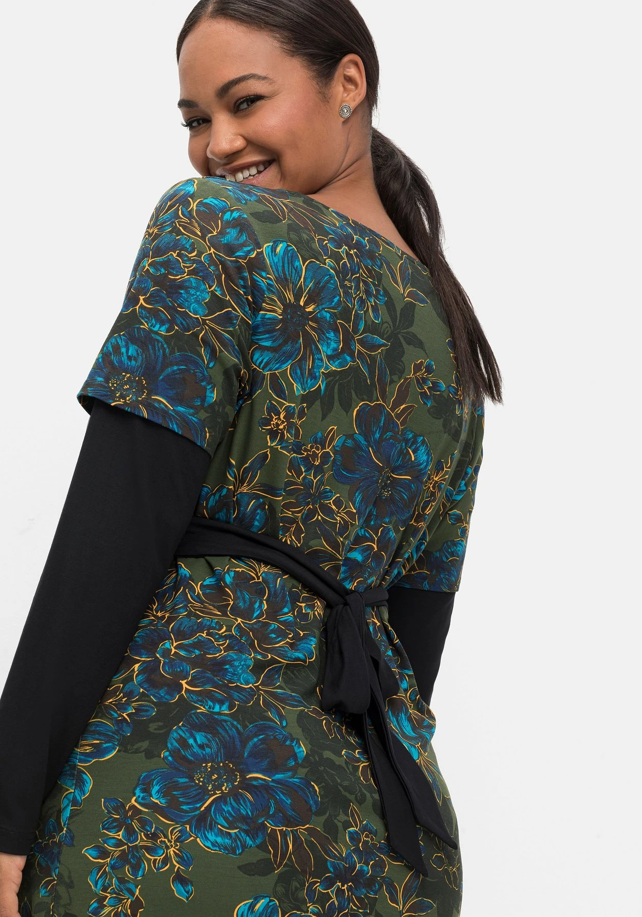 Die leicht elastische Viskose fällt weich fließend und trägt sich sehr angenehm. Für die Herstellung von LENZING™ ECOVERO™ Viskose werden ausschließlich zertifizierte, nachhaltige Holzressourcen verwendet. Auch der gesamte Produktionsprozess entspricht streng den Richtlinien des EU Öko-Labels. LENZING™ und ECOVERO™ sind Marken der Lenzing AG. sheego cares!
