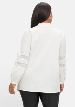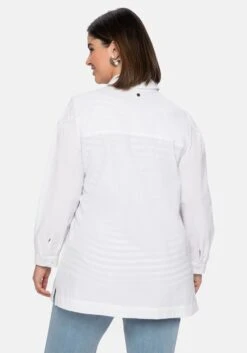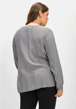 Longshirt im spannungsvollen Mustermix von sheego by Joe Browns. Das schlichte Oberteil zeigt sich mit liebevollen Details, während sich das Unterteil mit femininem Blumendruck und Zipfelsaum abhebt. So geht der V-Ausschnitt in eine Knopfleiste über, herzförmige Knöpfe und feine Spitzeneinsätze sind weitere dekorative Elemente.