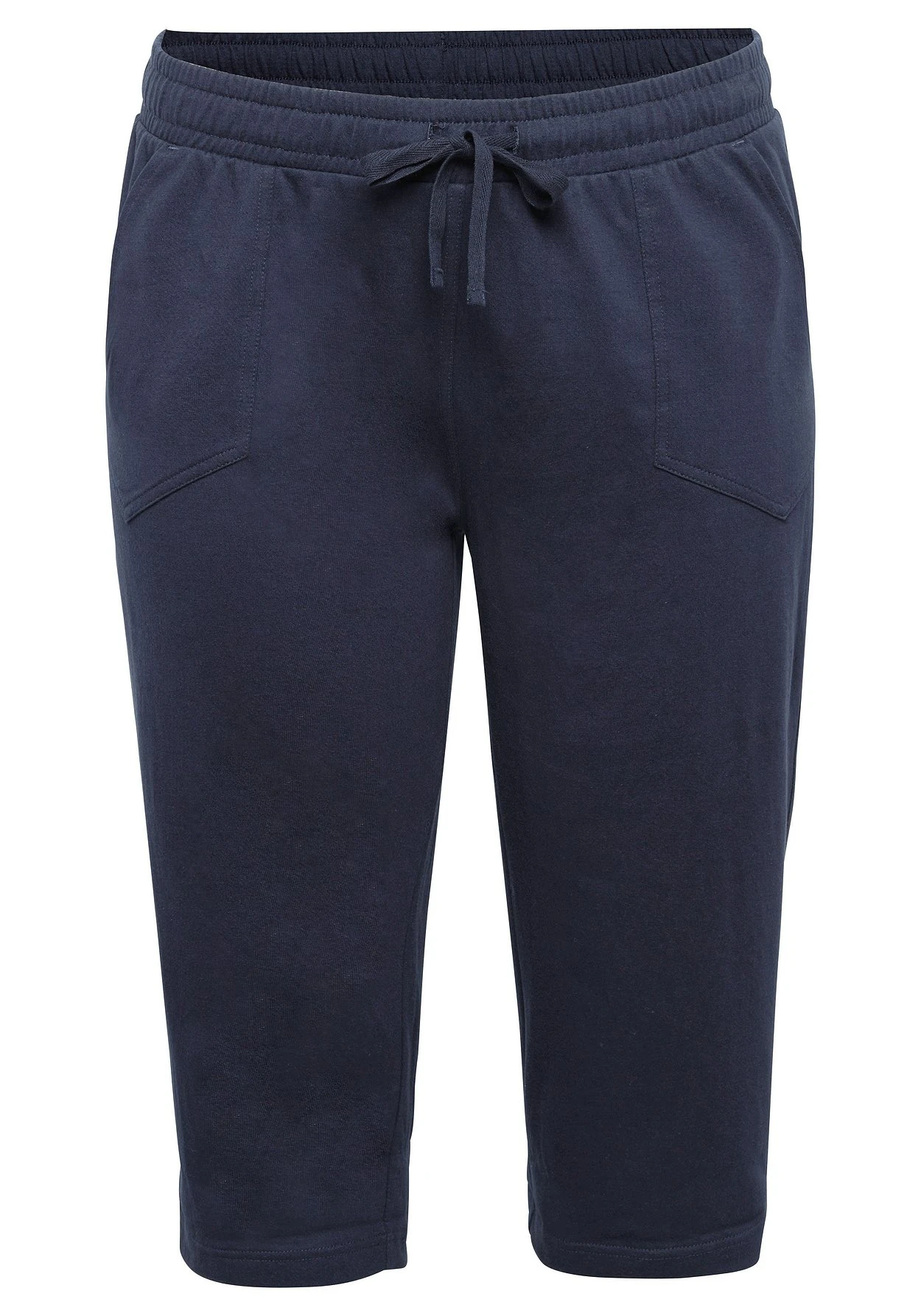 Jerseyhose in 3/4-Länge. Diese gerade geschnittene Hose ist in bequemer Schlupfform gestaltet, das Bindeband gibt ihr eine sportive Note. Während sich vorn zwei große Eingrifftaschen befinden, sind hinten zwei weitere Taschen aufgesetzt. Ein absolutes Basic, das dich durch den Alltag begleitet!