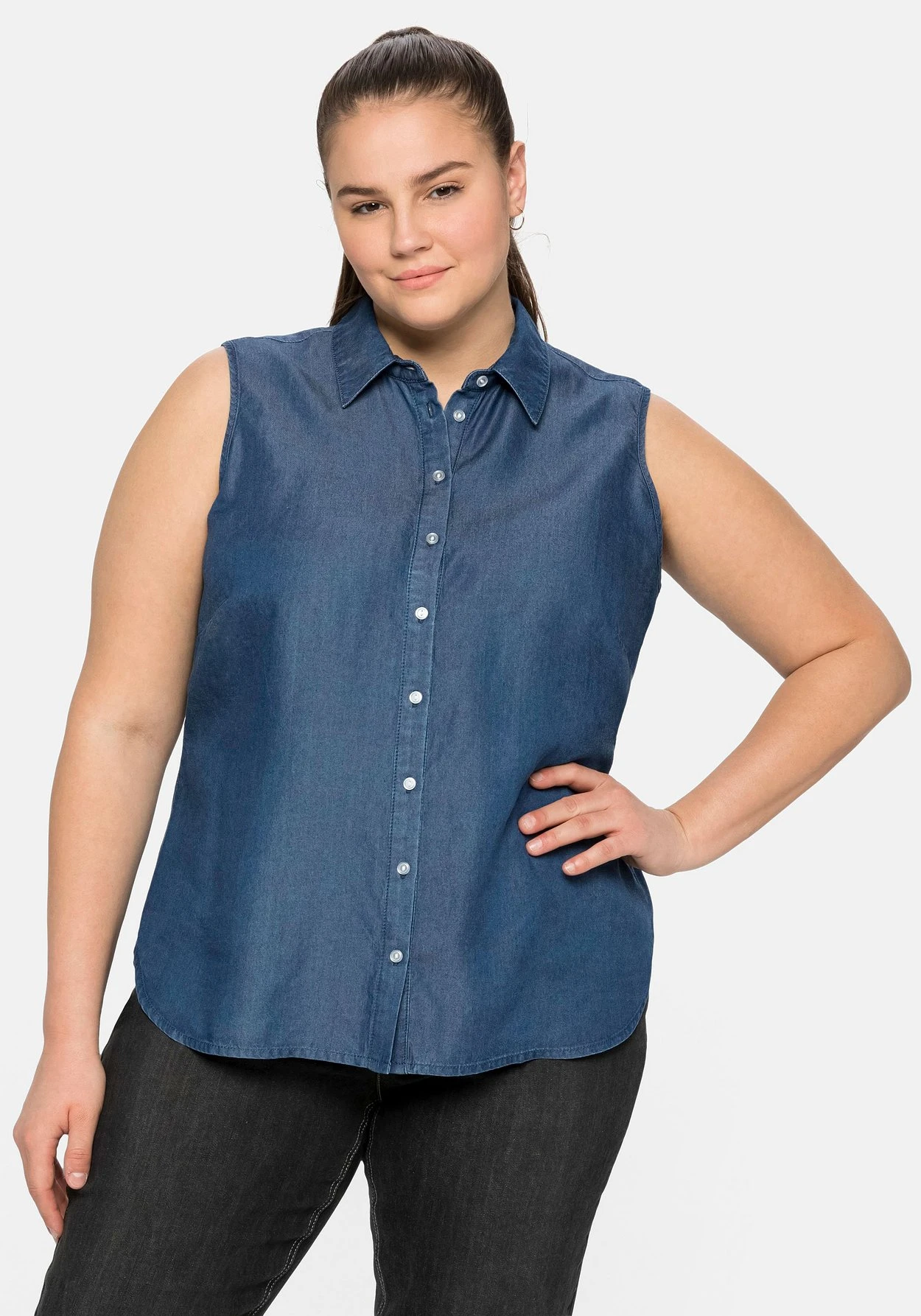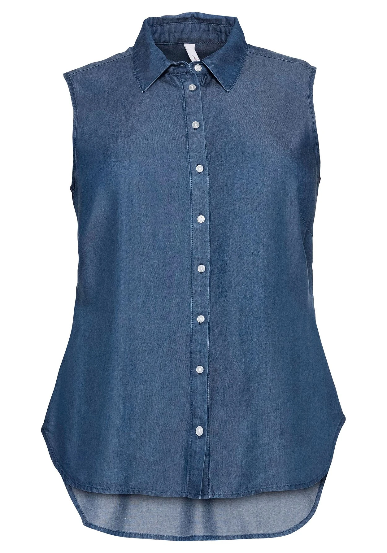 Ärmellose Bluse mit durchgehender Knopfleiste. Die weich fallende Qualität erhält durch die Denim-Optik eine sportive Note.