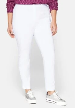 Einfach und schlicht: Das ist die schmale Bengalin-Stretch-Hose. Für Bequemlichkeit sorgt ein schmaler Gummizugbund. Ein optisches Highlight sind die Gehschlitze am Saum. Ohne Taschen.