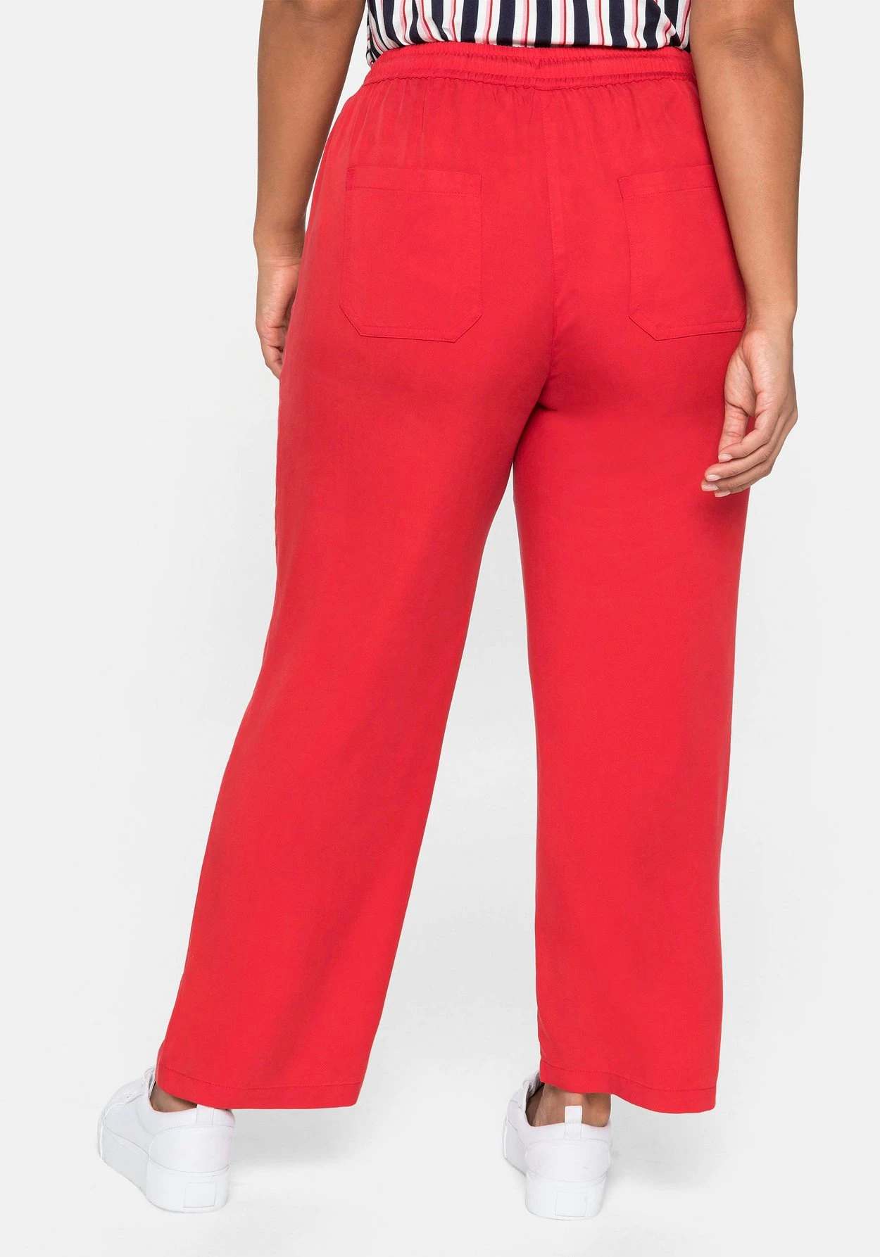 Die trageangenehme TENCEL™ Lyocell Qualität fällt weich und fließend. TENCEL™ Lyocell ist eine glatte, seidige Faser, die zum größten Teil aus Eukalyptusholz gewonnen wird – einer Pflanze, die schnell wächst und daher ohne künstliche Bewässerung oder Pestizid-Einsatz auskommt! Tencel™ ist eine Marke der Lenzing AG. sheego cares!
