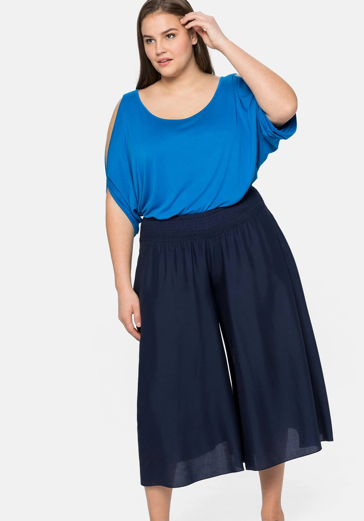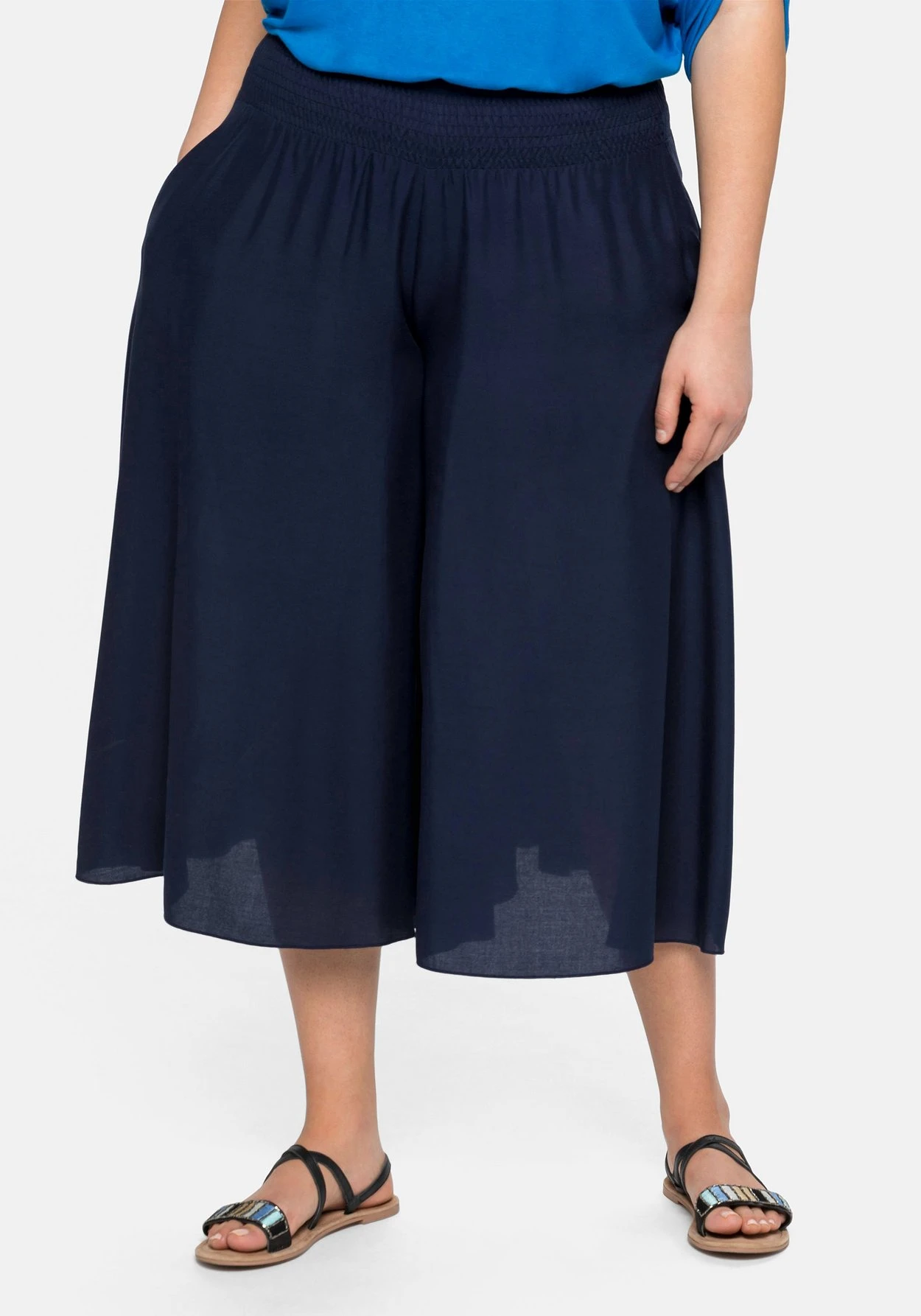 Dieser Style von sheego hat ein kleines Geheimnis: Er sieht aus wie ein Rock, ist aber so bequem und unkompliziert zu tragen wie eine Hose. Der breite Smokbund macht den Hosenrock besonders bequem. Praktisch: In der Seitennaht befinden sich zwei Taschen.