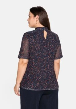 Die Bluse ist gerade geschnitten und fällt lang bis auf den Po.