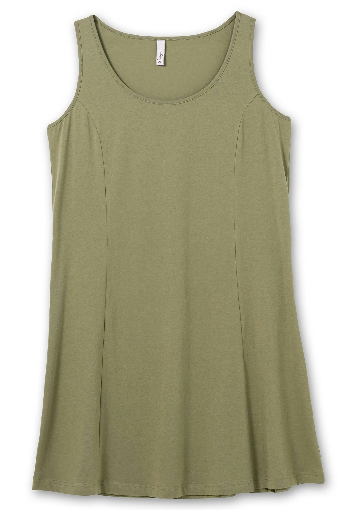 Dieses Kleid mit breiten, ärmellosen Trägern ist ein toller Begleiter für den Sommer. Sein schlichtes Design mit Rundhalsausschnitt macht es zu einem echten Kombitalent. In bequemer A-Linie.
