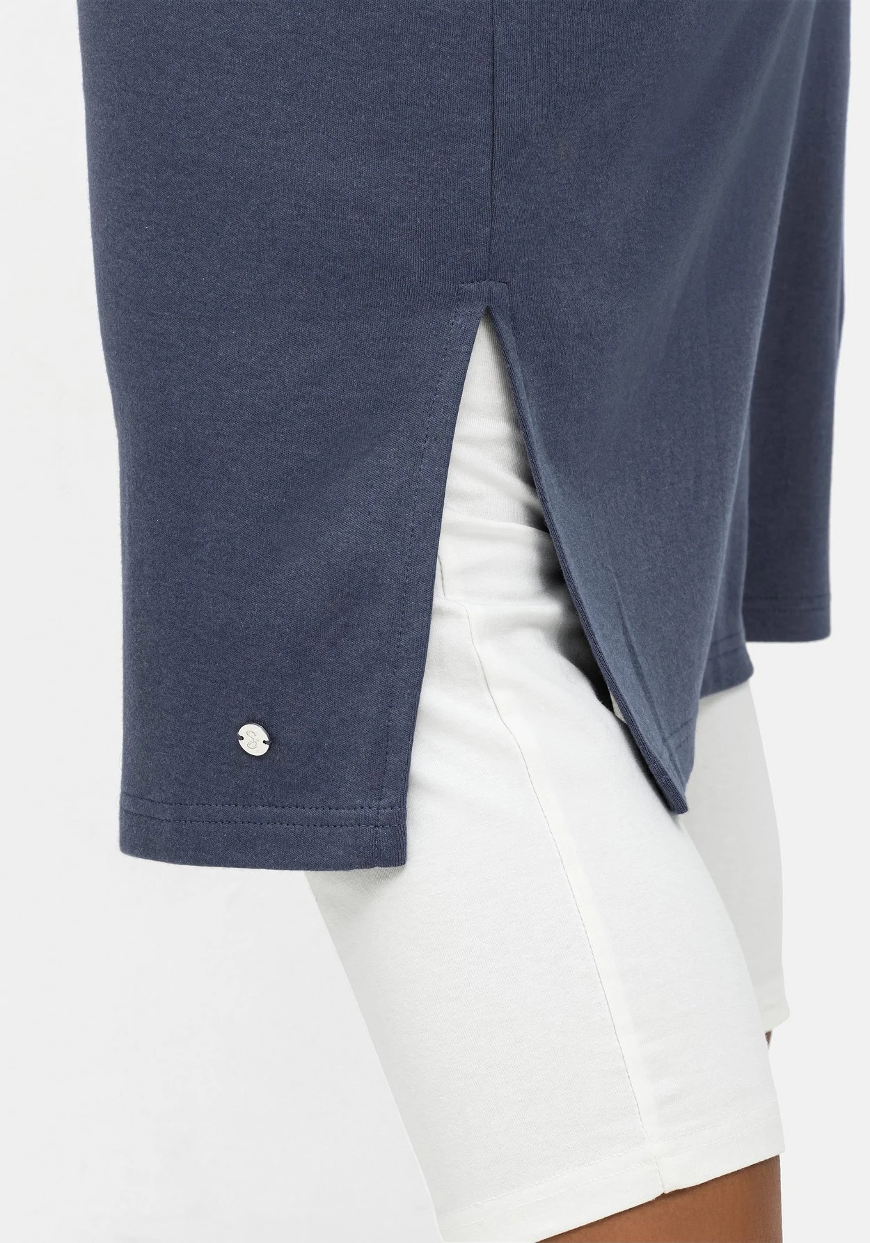 Der lockere, gerade Schnitt sitzt bequem und reicht bis über das Knie.