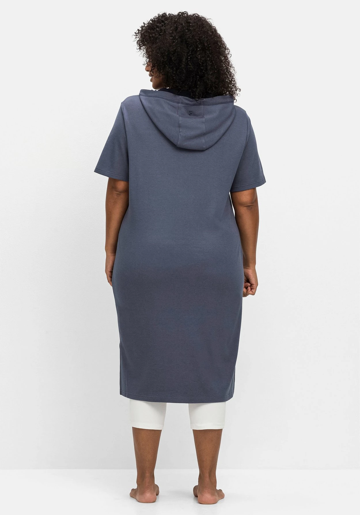 Relax-Shirtkleid mit Kapuze. Die aufgesetzte Kängurutasche unterstreicht die lässig-sportive Optik. Hohe, seitliche Schlitze sorgen für Bewegungsfreiheit und runden den Homewear-Look entspannt ab.