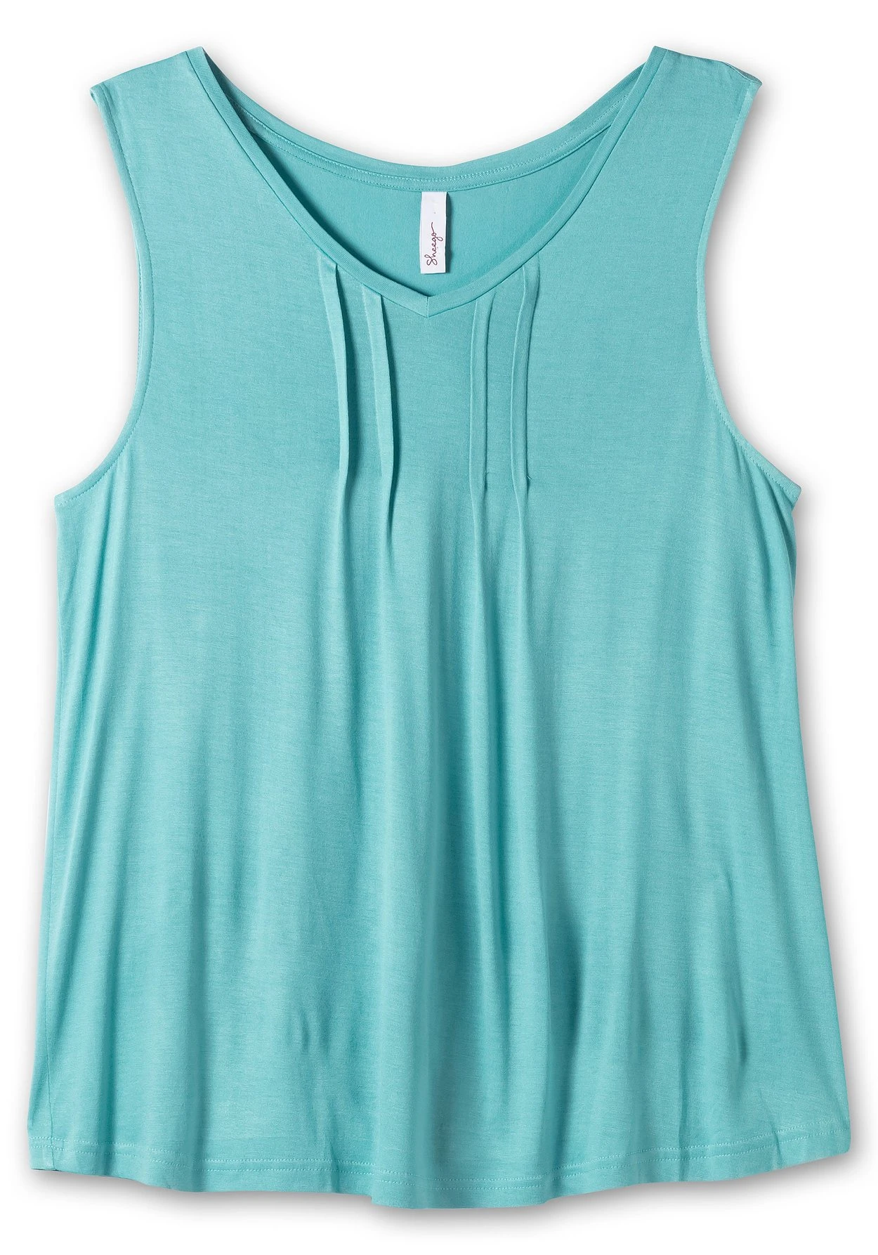 Top mit V-Ausschnitt. Die fixierten Falten vorn geben dem sommerlichen Oberteil eine feminine Note. Der Tanktop-Schnitt lässt die BH-Träger geschickt verschwinden und macht den Tragekomfort perfekt.