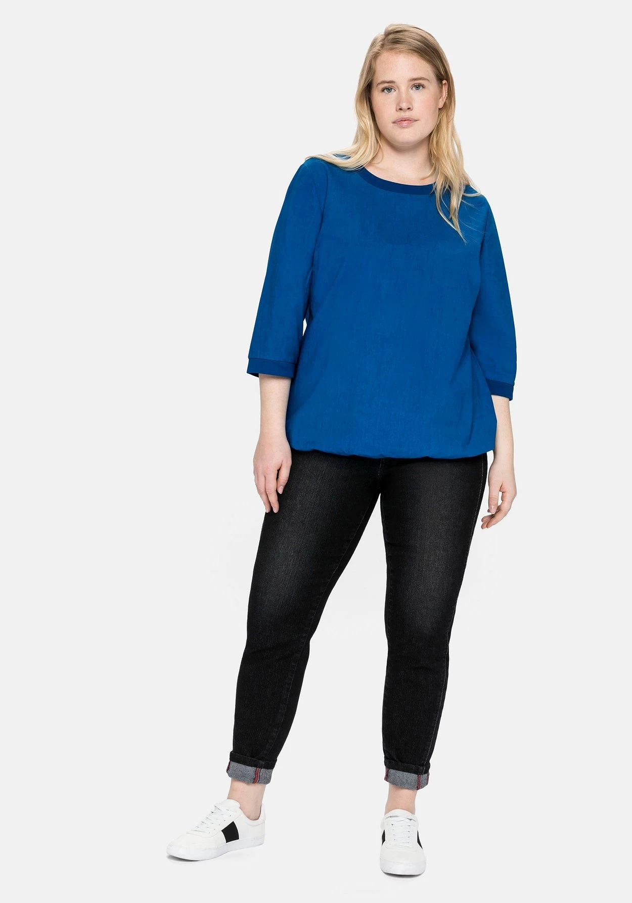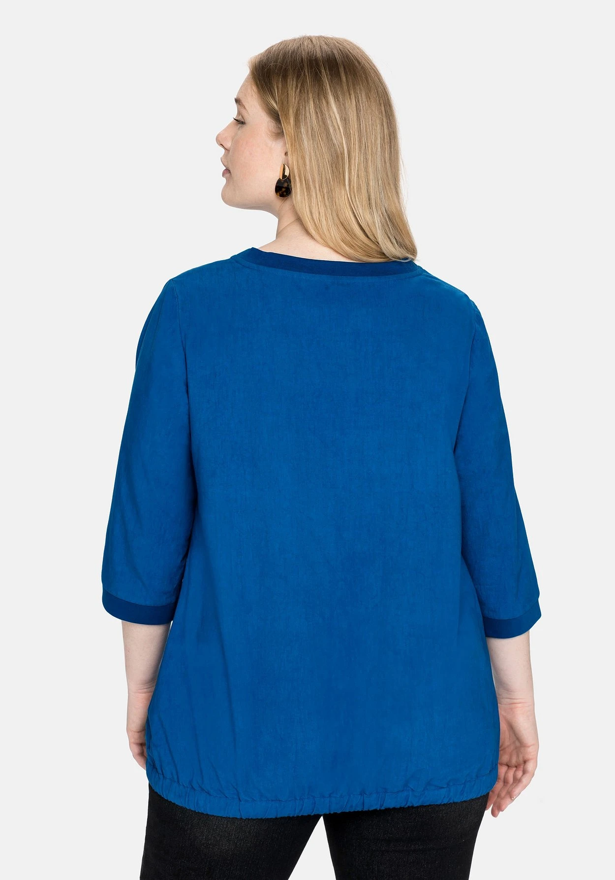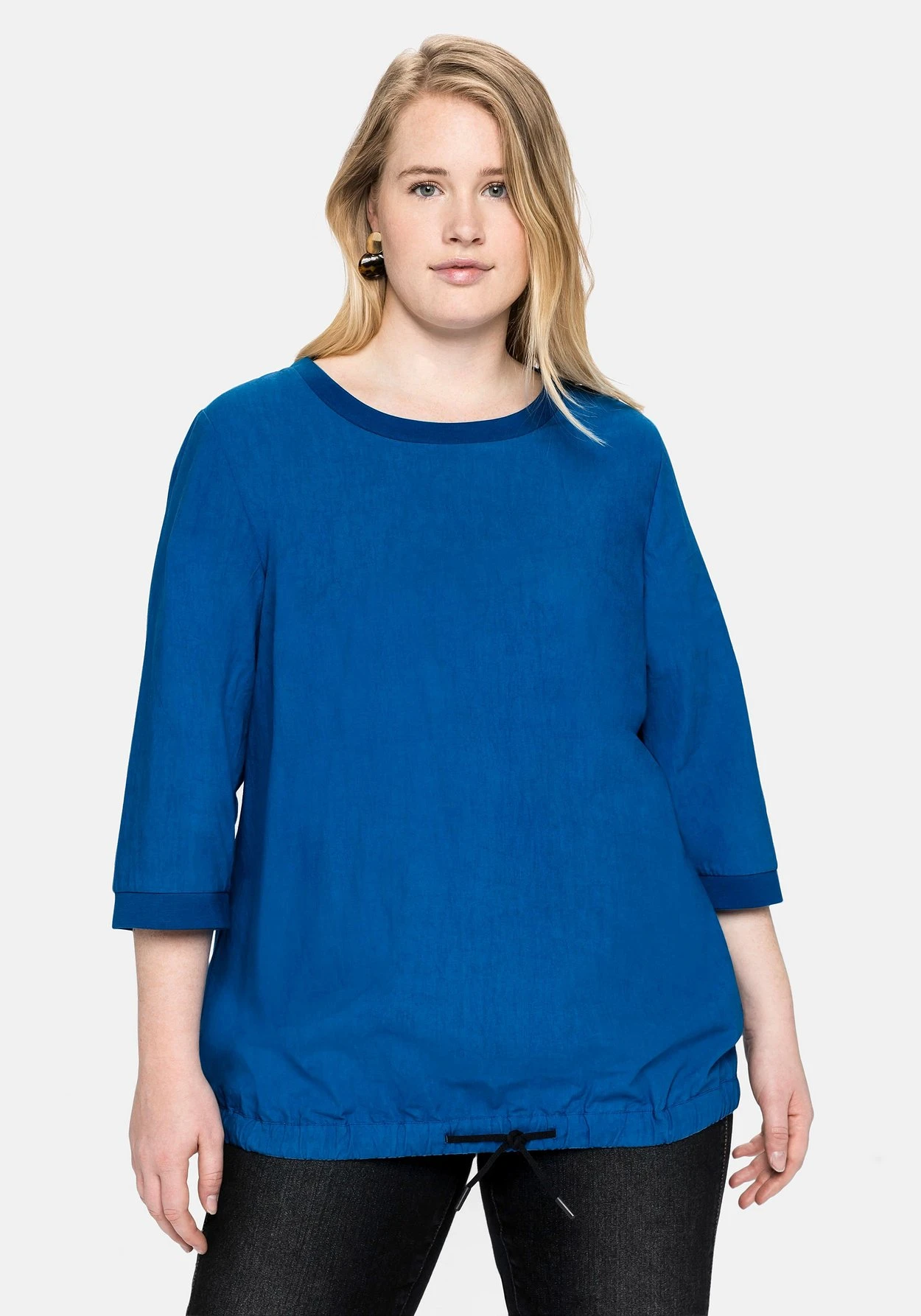 Tunika mit 3/4-Ärmeln. Tunnelzug und Kordel am Saum verleihen dem clean gehaltenen Oberteil einen sportiven Touch. Rippbundabschlüsse am Ärmel und am Ausschnitt sind dazu eine lässige Ergänzung.