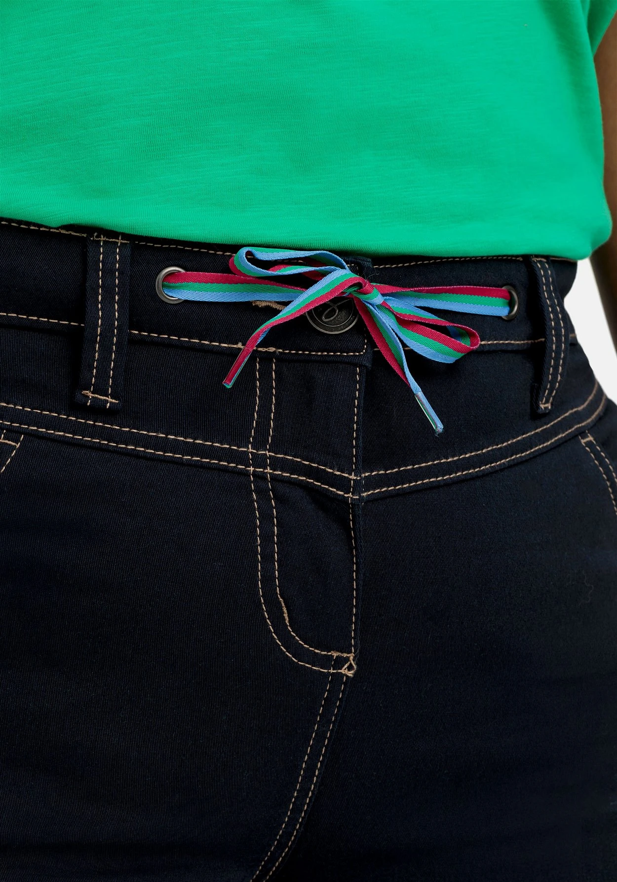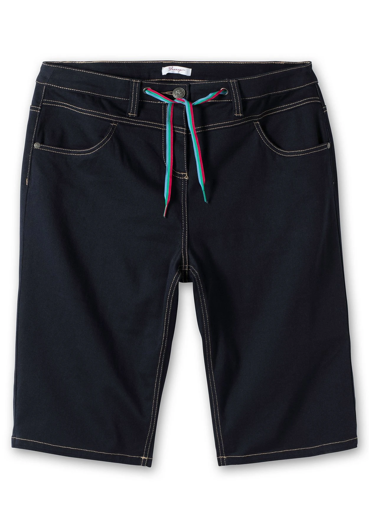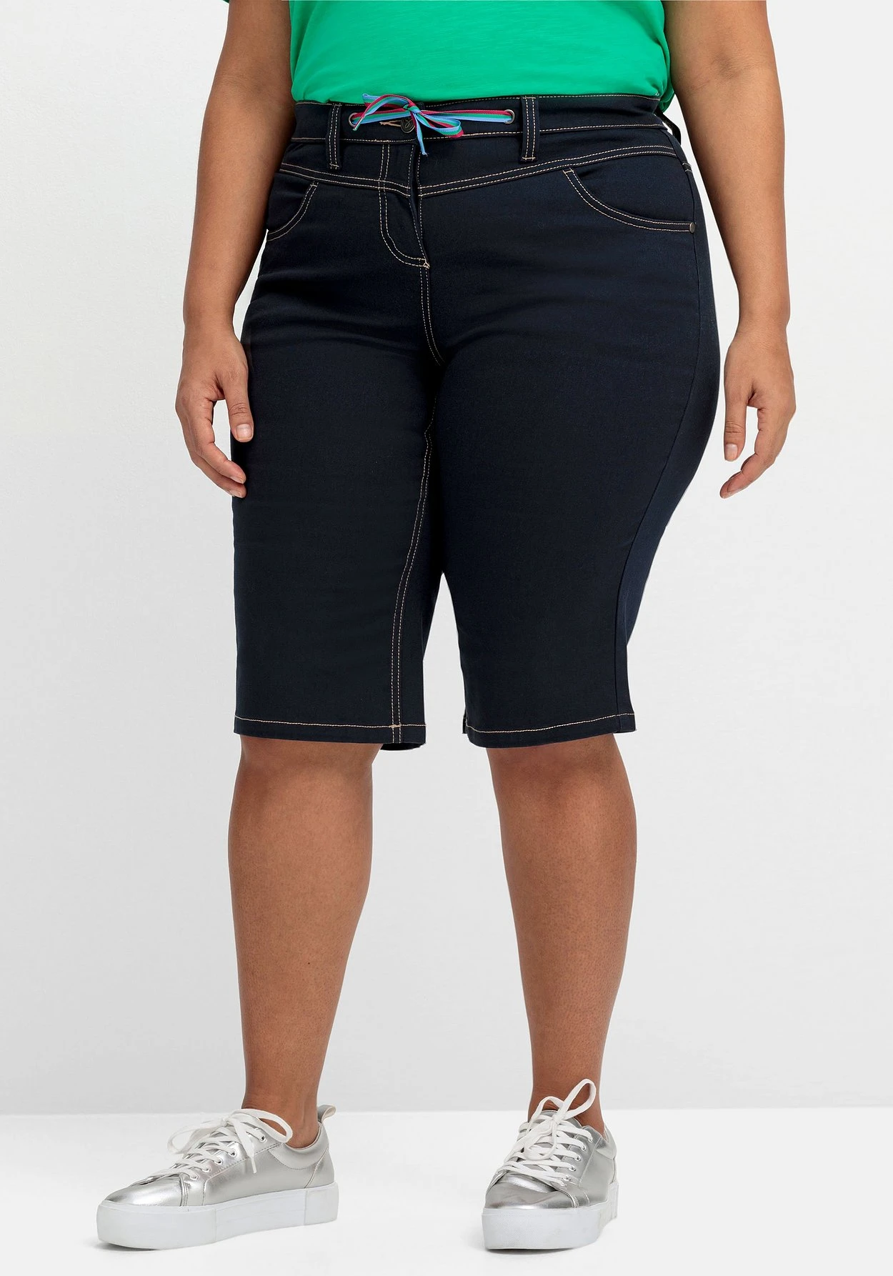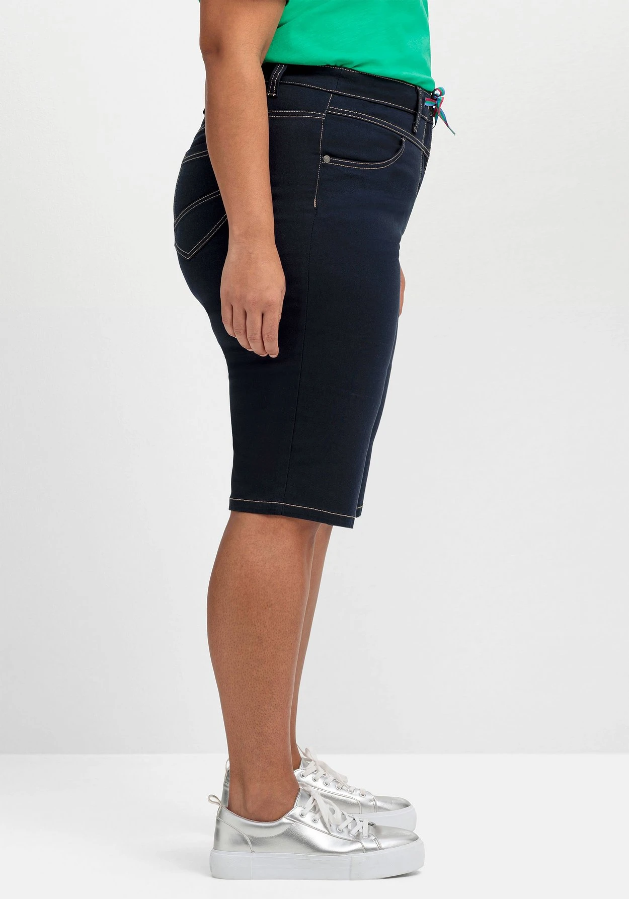 Bermudas aus Stretch-Twill. Der Formbund ist mit Gürtelschlaufen gearbeitet, schließen lässt sich die Hose mit Knopf und Reißverschluss. Ein kontrastfarbenes Bindeband dient als sportiver Eyecatcher. Zwei praktische Eingrifftaschen vorn und zwei Gesäßtaschen hinten ergänzen den legeren Look.