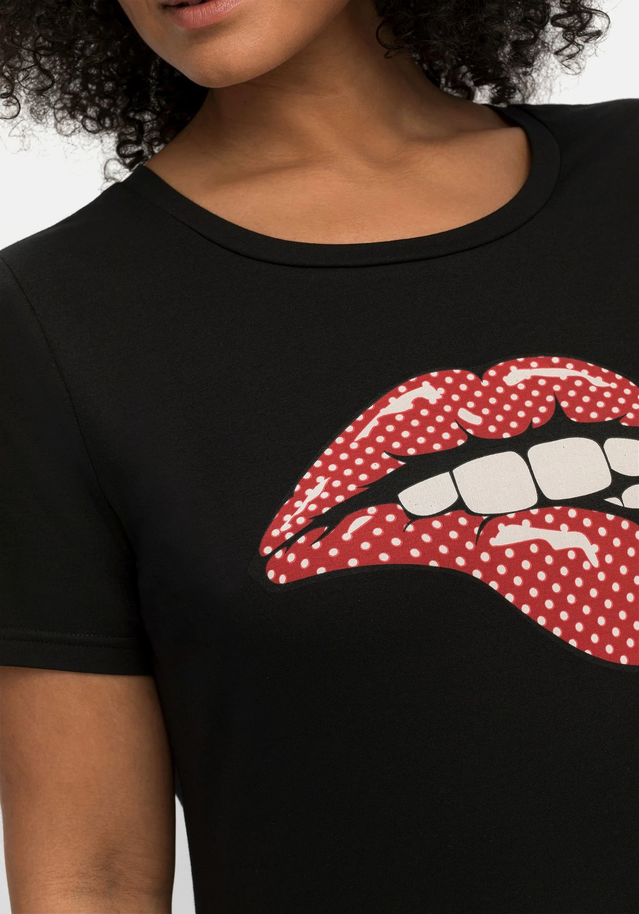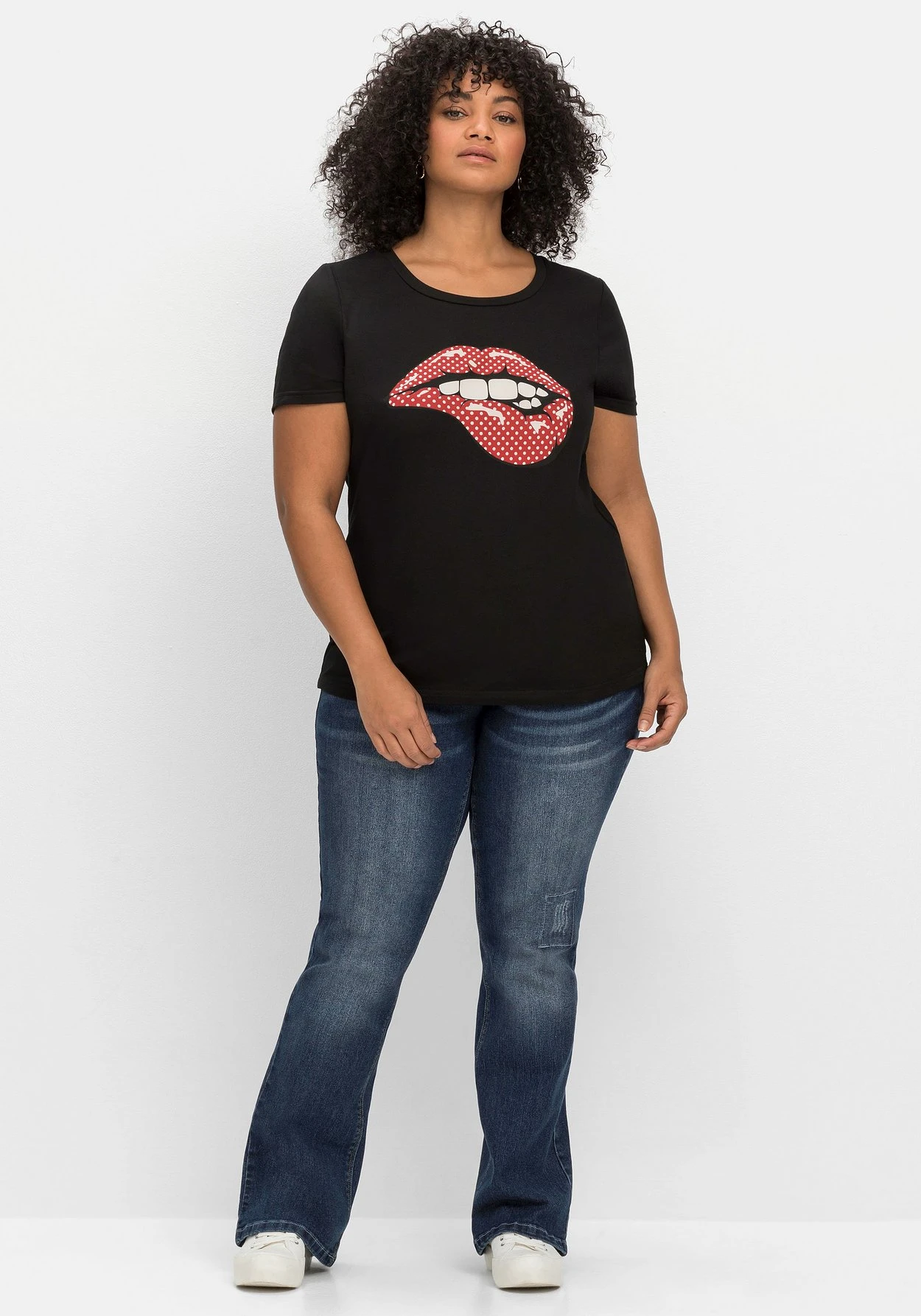 T-Shirt mit weitem Rundhals von sheego by Joe Browns. Eyecatcher ist der plakative Frontdruck, der alle Blicke auf sich zieht.