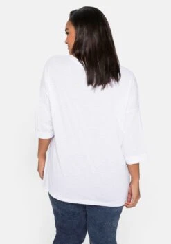 Der gewebte Blusenstoff ist aus reiner Baumwolle gearbeitet und sehr hautfreundlich. Darüber hinaus unterstützt du mit deinem Kauf die Arbeit von „Cotton made in Africa“. Die Initiative leistet Hilfe zur Selbsthilfe durch Handel und will so die Lebensbedingungen afrikanischer Kleinbauern verbessern. sheego cares!